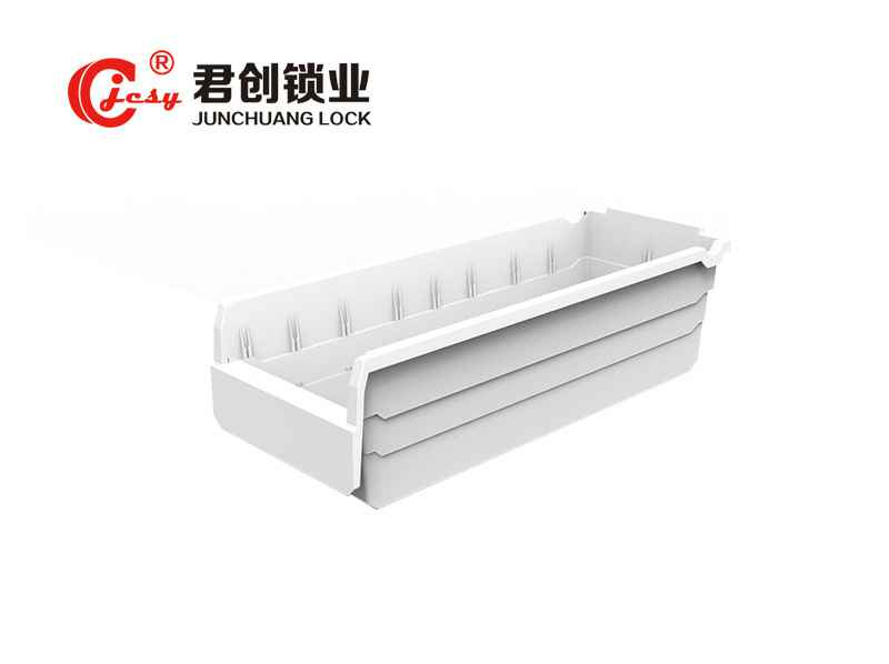 结构上采用半开口式,让内容物一目了然,透明前挡板开、合两个状态能明确显示需不需要补货;不同物料可按照盒子大小选择性存放,相同宽度的盒子可固定存放同种物料,节省辨认时间